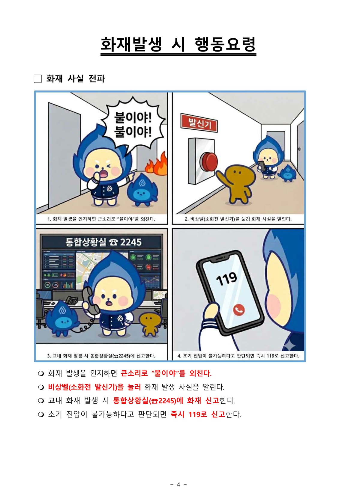 사생 여러분의 안전을 위한 훈련이니 적극적인 협조를 부탁드립니다.