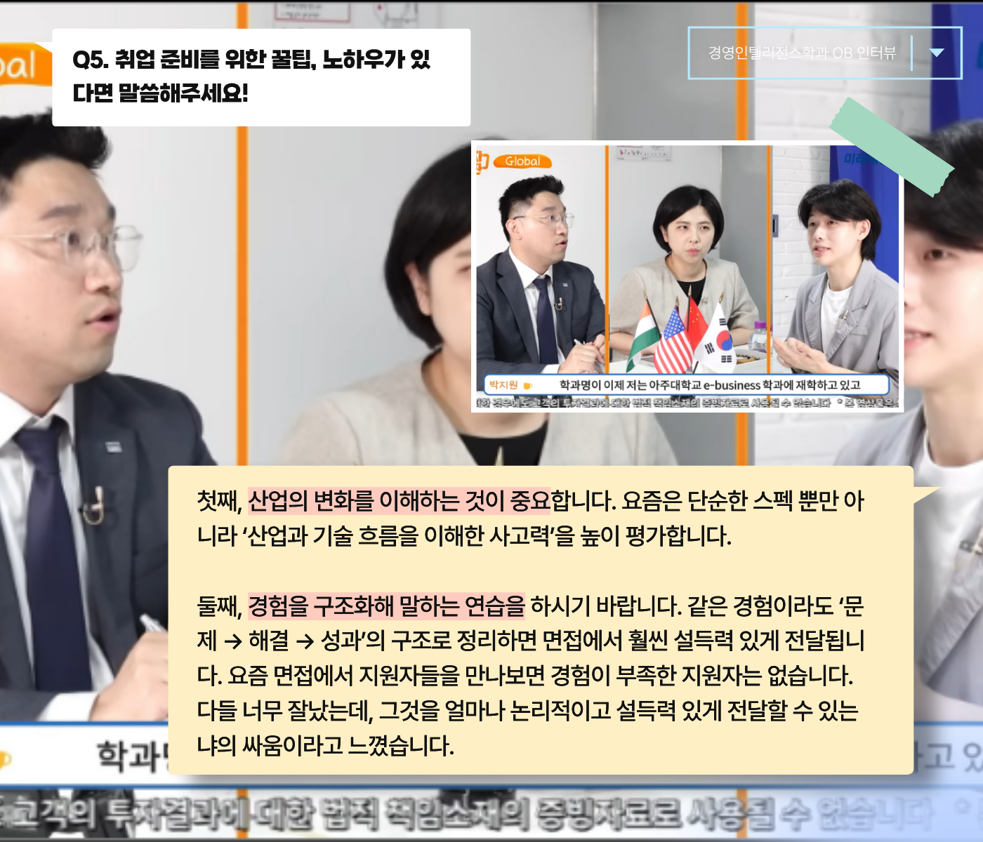 특히 인상 깊었던 건 선배님의 글로벌 챌린지 경험이였습니다!