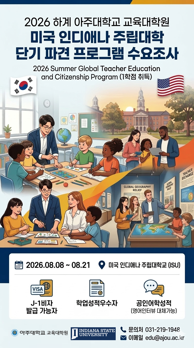 [아주대학교 교육대학원] 2026 하계 인디애나 주립대학(ISU) 단기 파견 프로그램 참가 수요조사