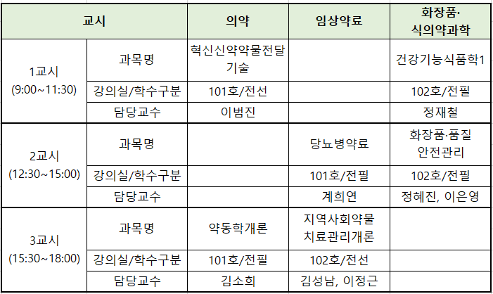 <2026학년도 1학기 개설과목 시간표>