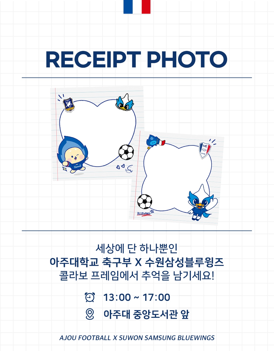 아주대학교 축구부와 수원삼성블루윙즈가 함께하는 특별한 이벤트부터 다양한 굿즈와 이기제 선수의 친필사인 축구화를 만날 수 있는 경품 추첨 이벤트까지🤫