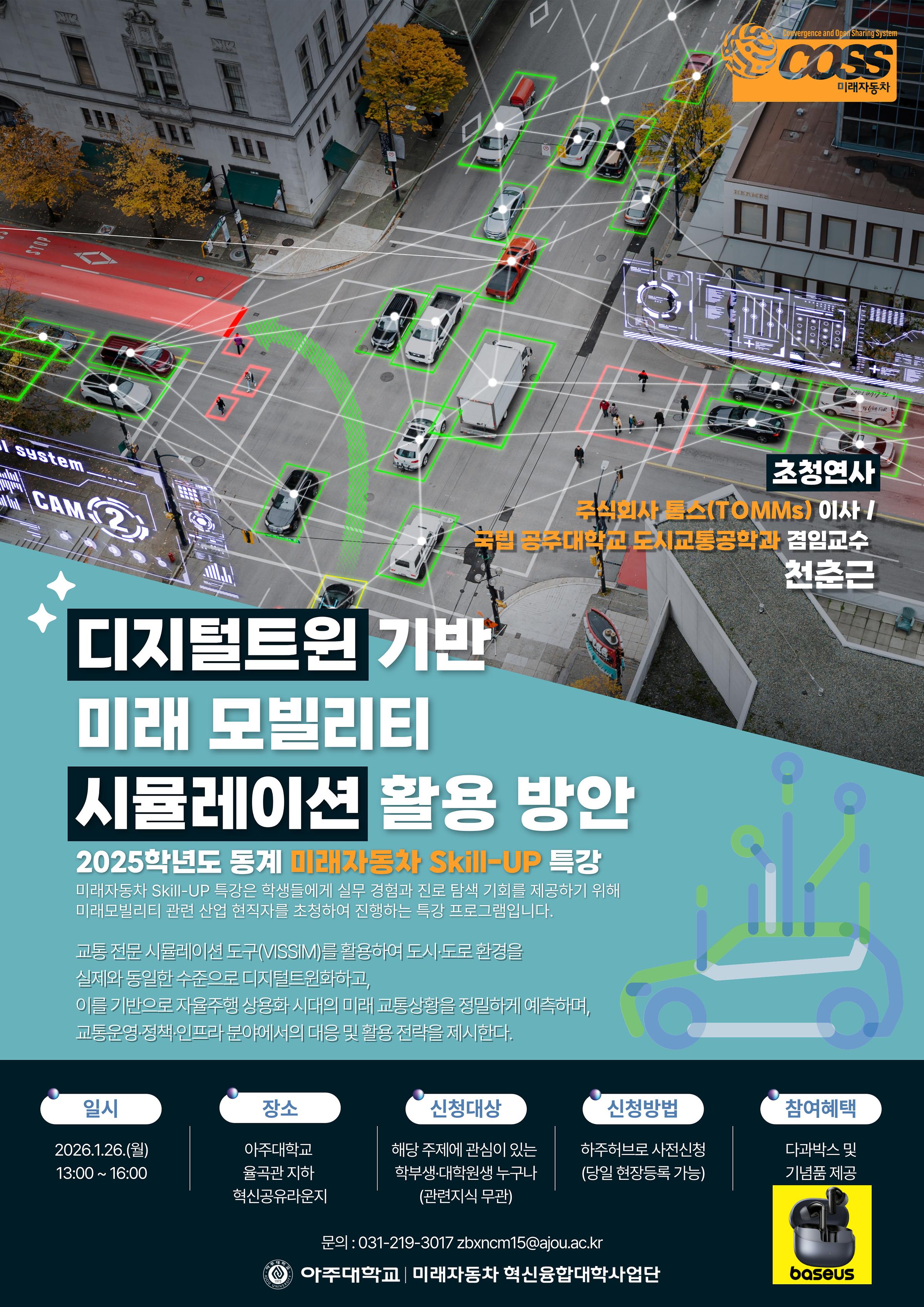 [비교과] [미래자동차 Skill-UP 특강]"디지털트윈 기반 미래 모빌리티 시뮬레이션 활용방안" 신청 안내