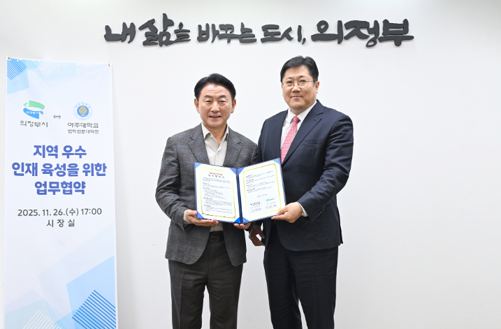우리 법전원은 이번 협약을 계기로 지역 우수 인재의 발굴·육성과 미래 법조인 양성을 위해 의정부시와 협력해 나가기로 했다. 지역 학생들을 위한 ▲법조 직역 진로 탐색 지원 및 진학 설명회 개최 ▲아주대 로스쿨 진학자 장학금 지원 ▲법학 관련 교육 프로그램 운영 등이 우선 추진된다.