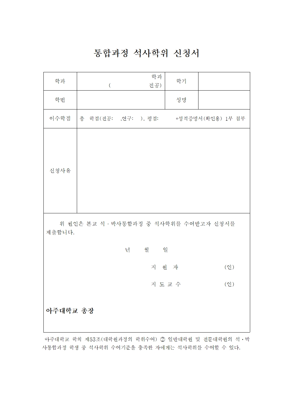 통합과정생 중 석사학위로 변경을 원하시는 학생은 기한 내 학과 사무실로 신청서 제출 바랍니다.