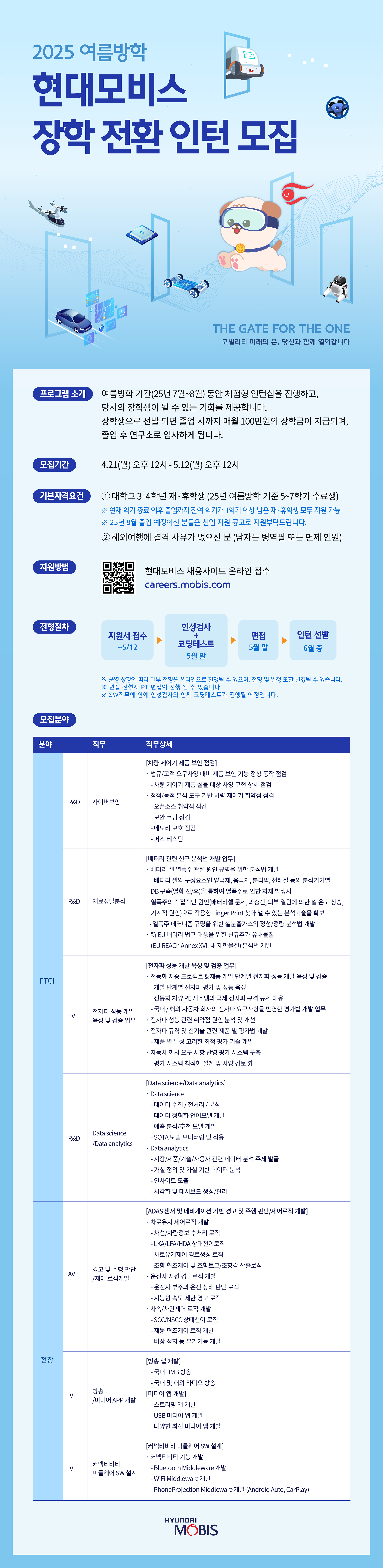 2025 여름방학 현대모비스 장학 전환 인턴 모집