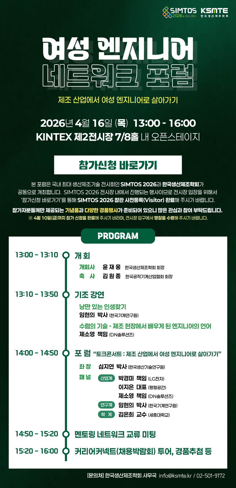 SIMTOS-KSMTE 여성 엔지니어 네트워크 포럼 개최(4.16)