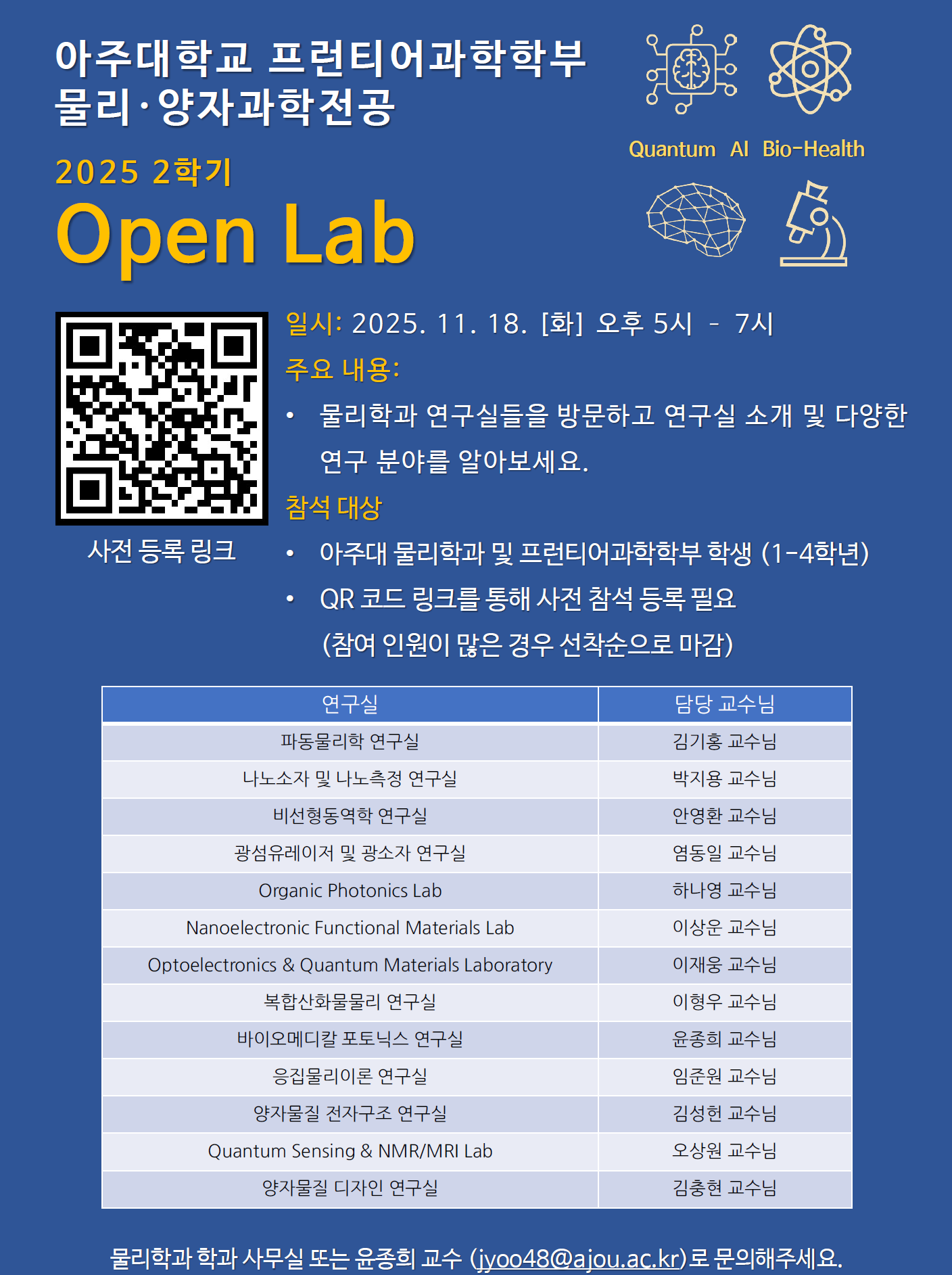 [공지] 2025-2학기 프런티어과학학부 물리 양자과학전공 대학원 설명회 및 오픈랩 개최