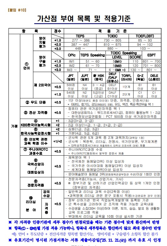 1.가점서류 제출기간: ~11/21(금) 18:00까지 학군단 행정실 제출