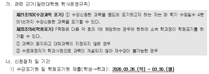 2026-1학기 수강포기 및 학점포기를 아래와 같이 시행합니다.