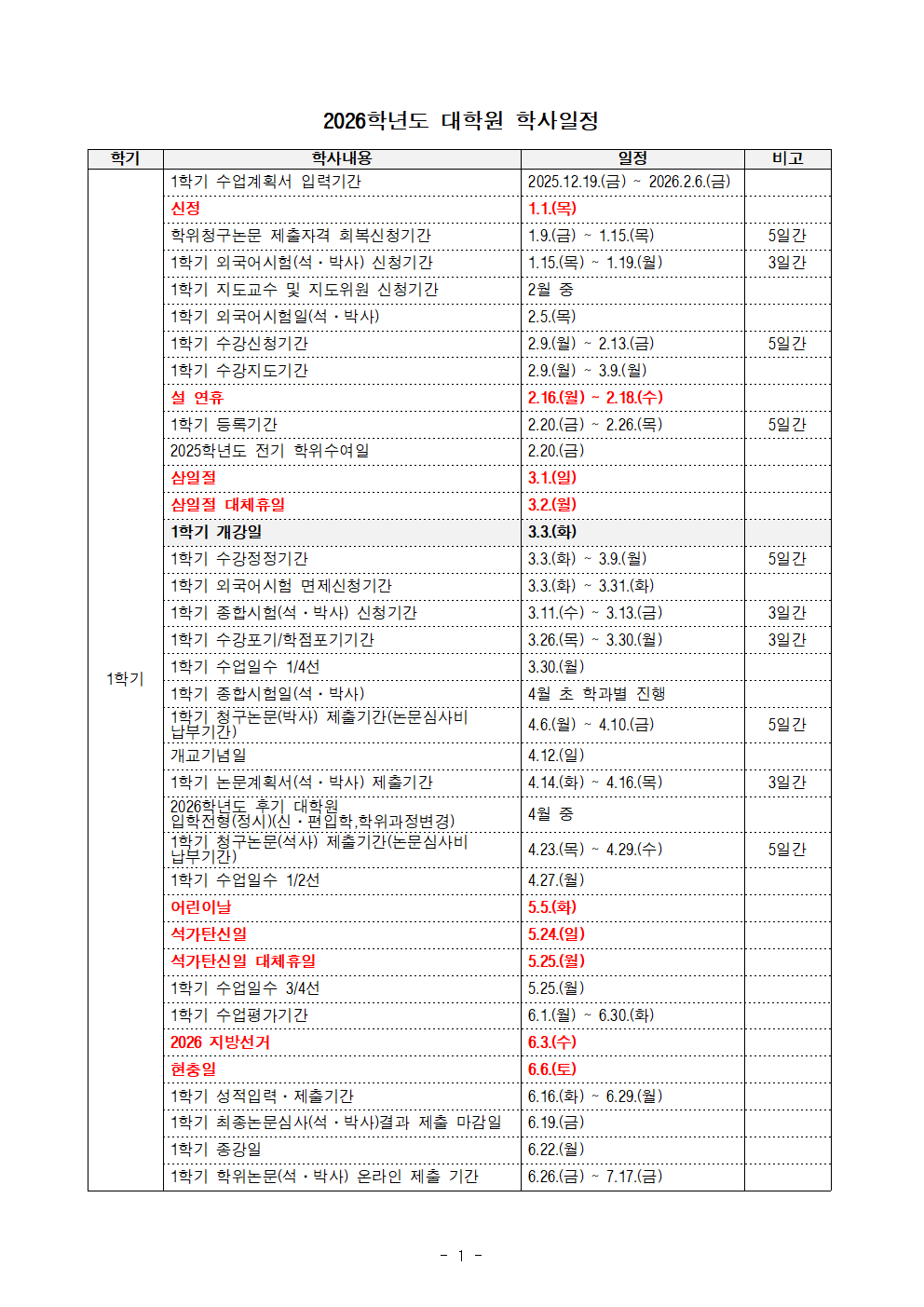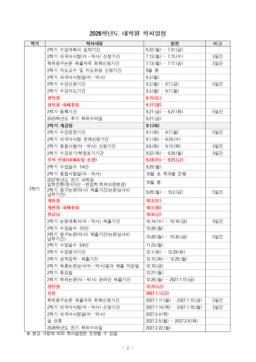 일반대학원 2025학년도 전기(2026년 2월 졸업예정) 학위논문 제출 안내