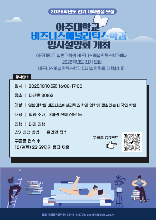 [2026학년도 전기 모집] 아주대학교 일반대학원 비즈니스애널리틱스학과 입시설명회 개최