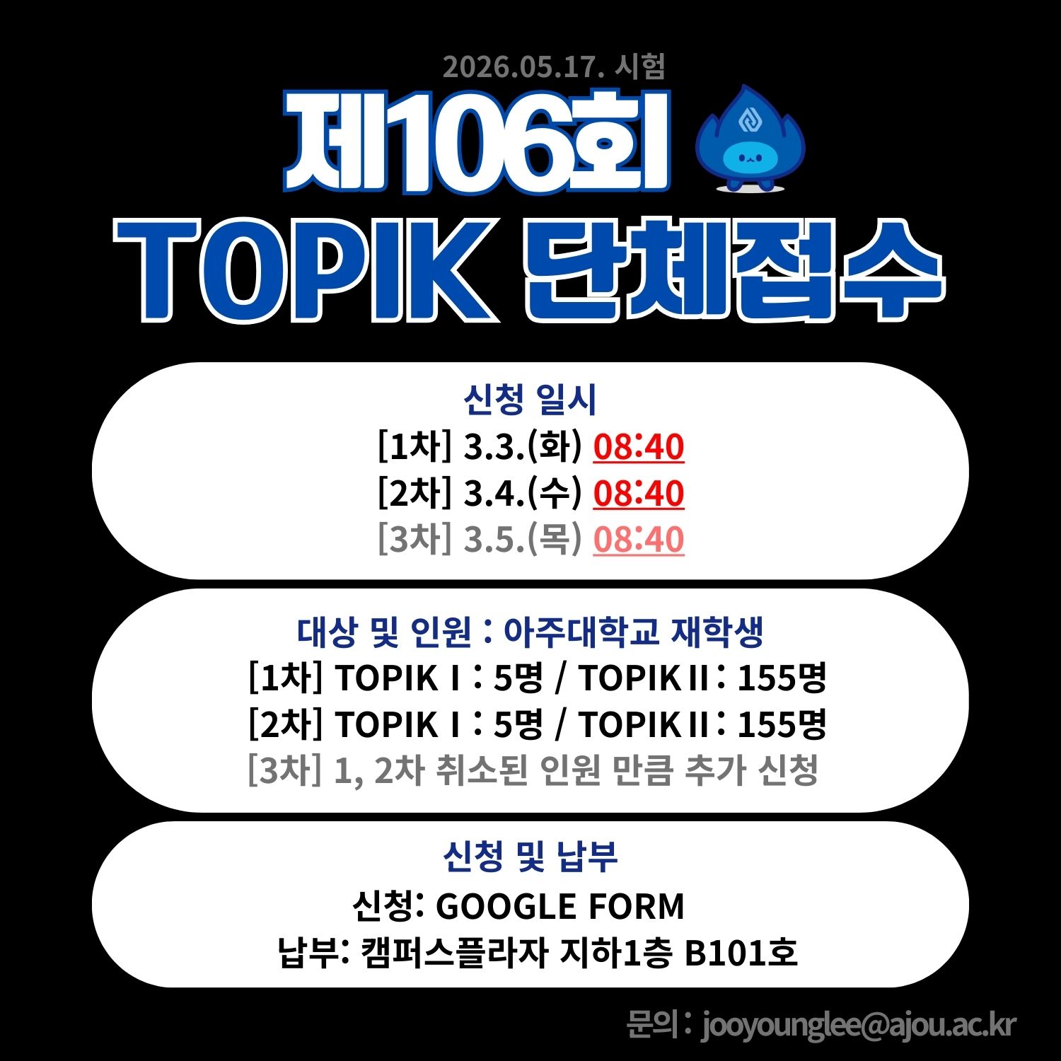 제106회 TOPIK(5.17. 시험) 단체접수 공지