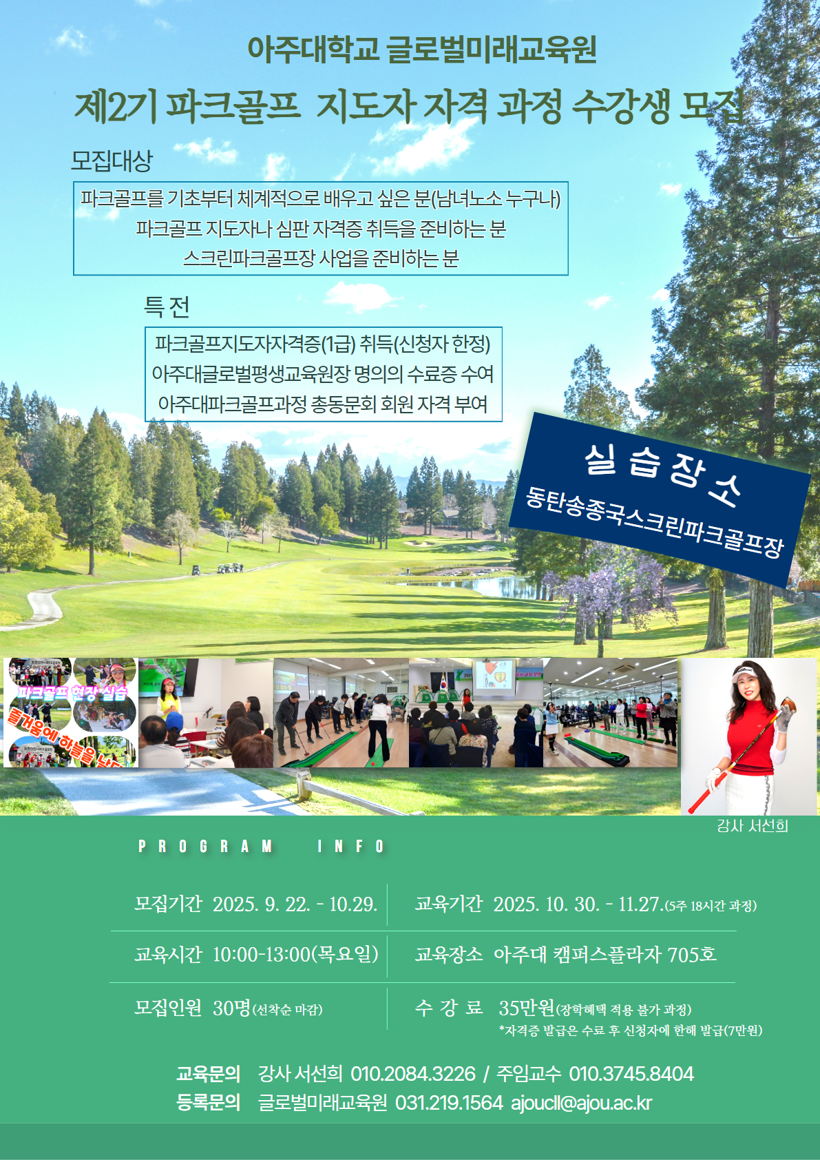 [평생교육과정] 2025년 제2기 파크골프 자격증과정 모집 ( ~10.29)