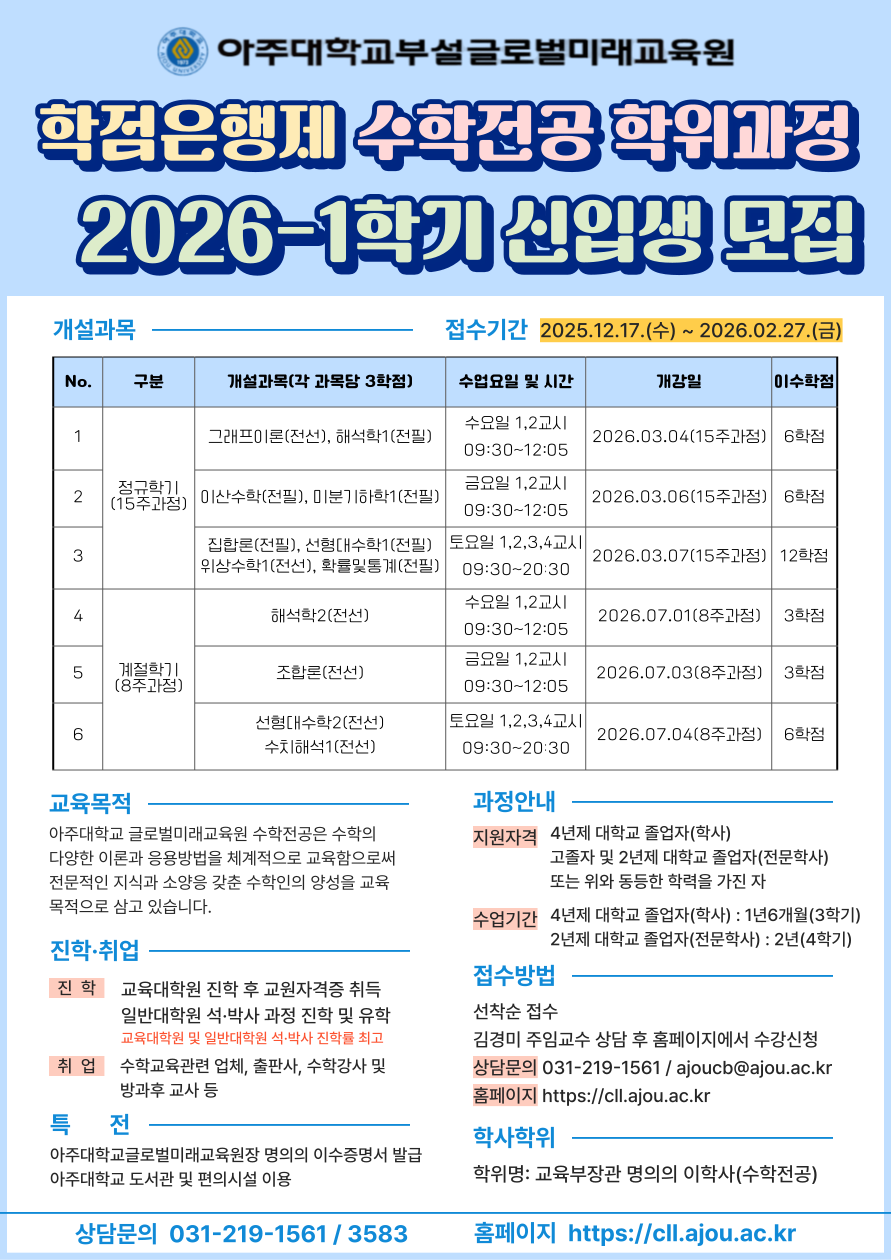 [학점은행제] [모집]2026년 1학기 학점은행제 수학과정 수강생 모집