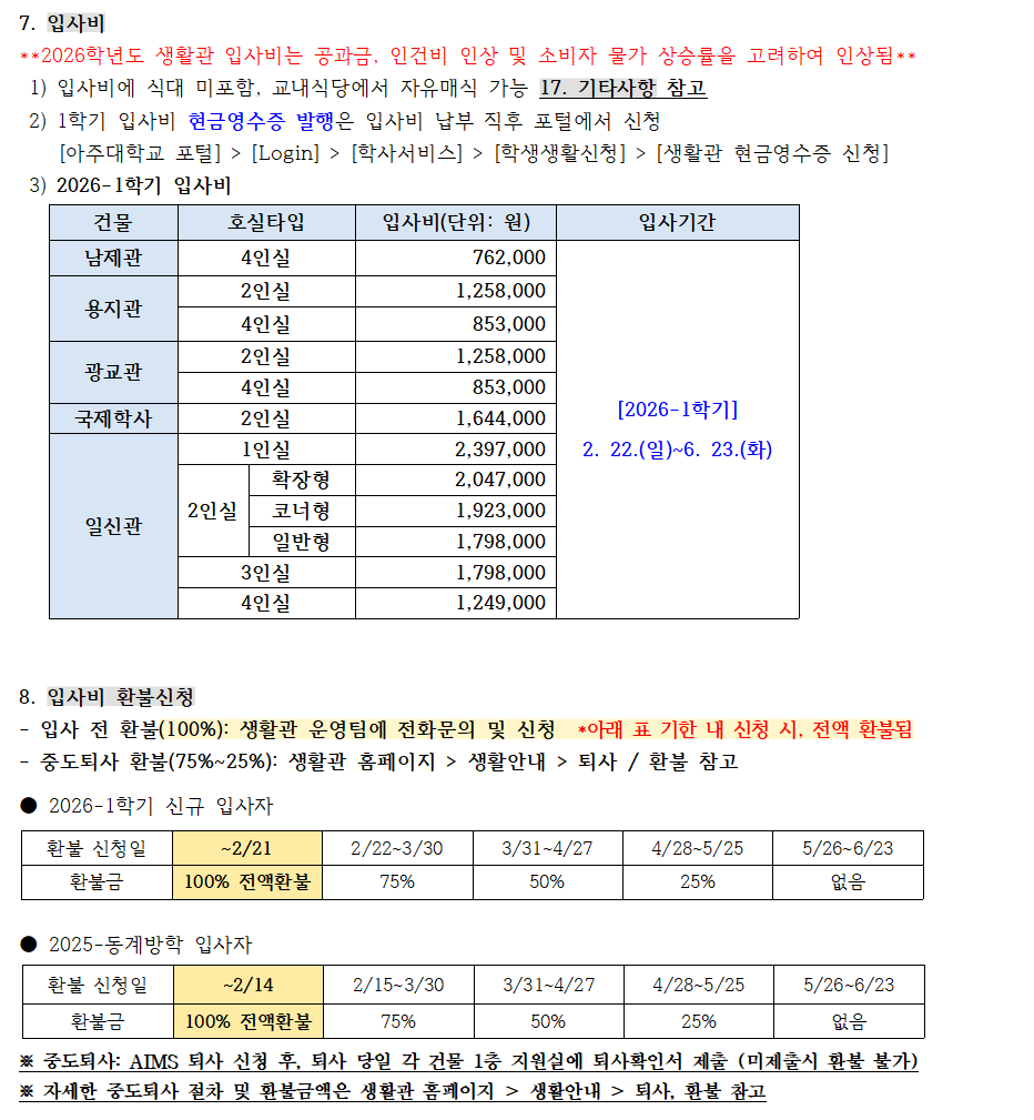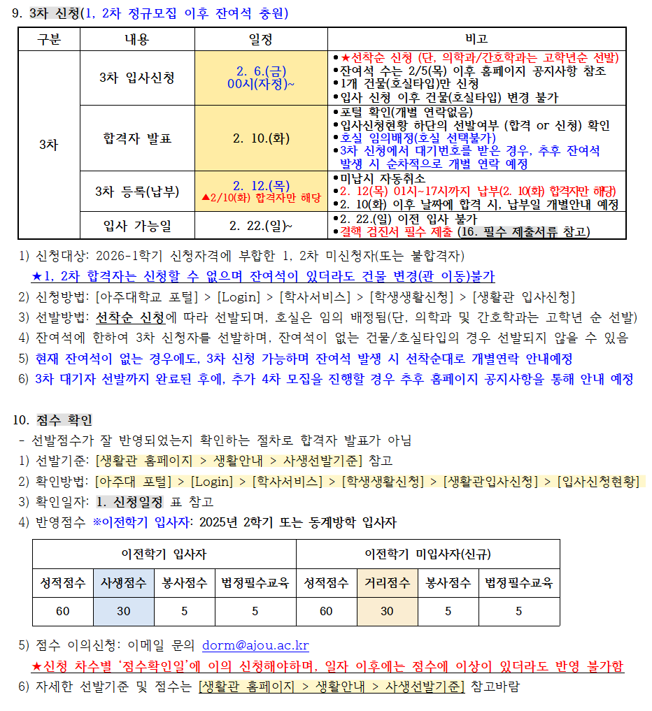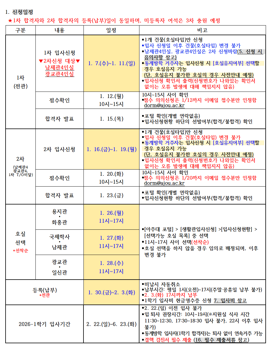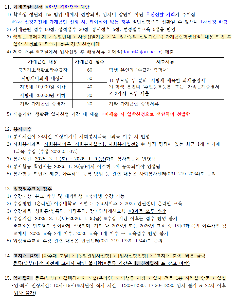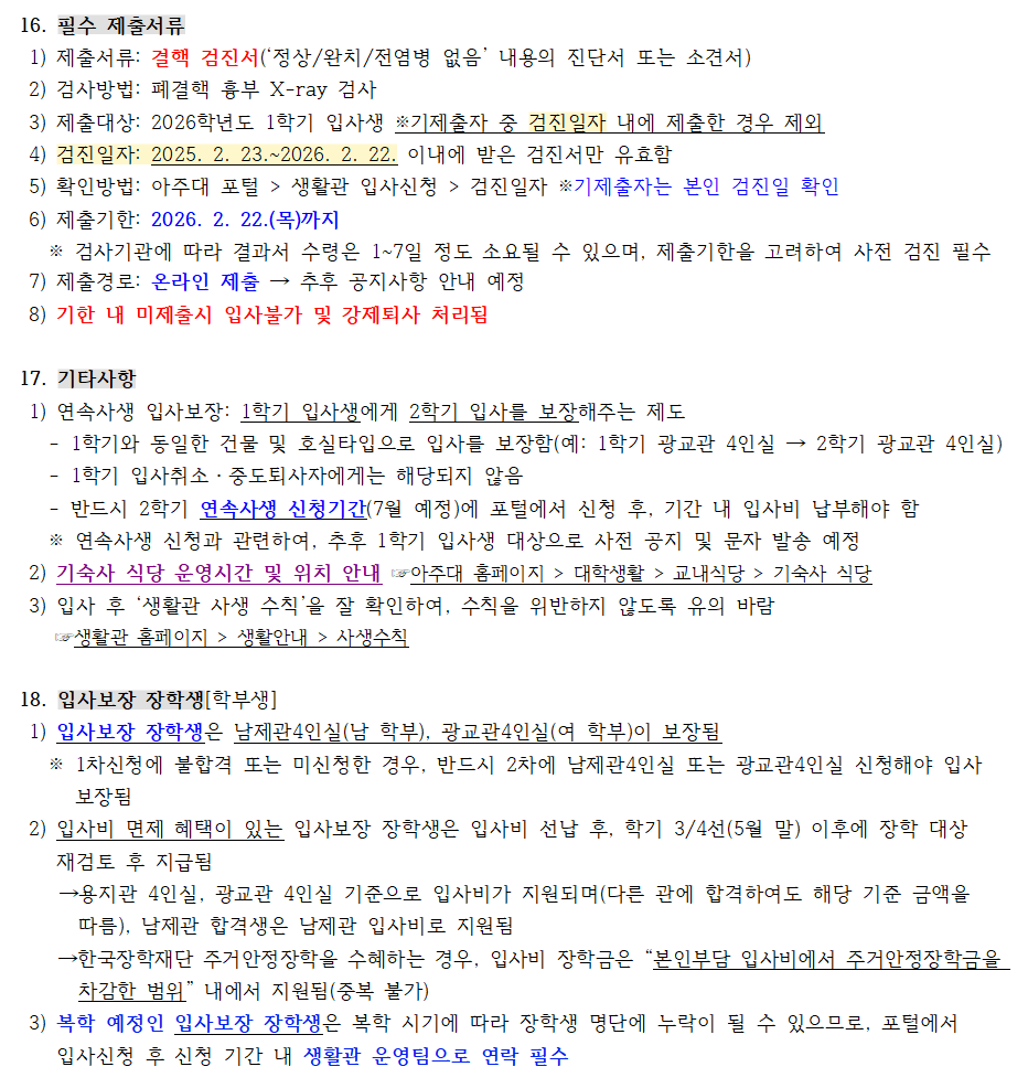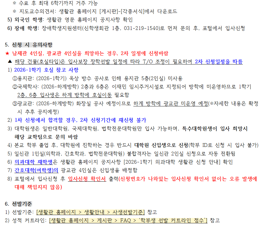 [공지] 2026학년도 1학기 생활관 입사신청 안내 (선발인원 추가 25.01.02)