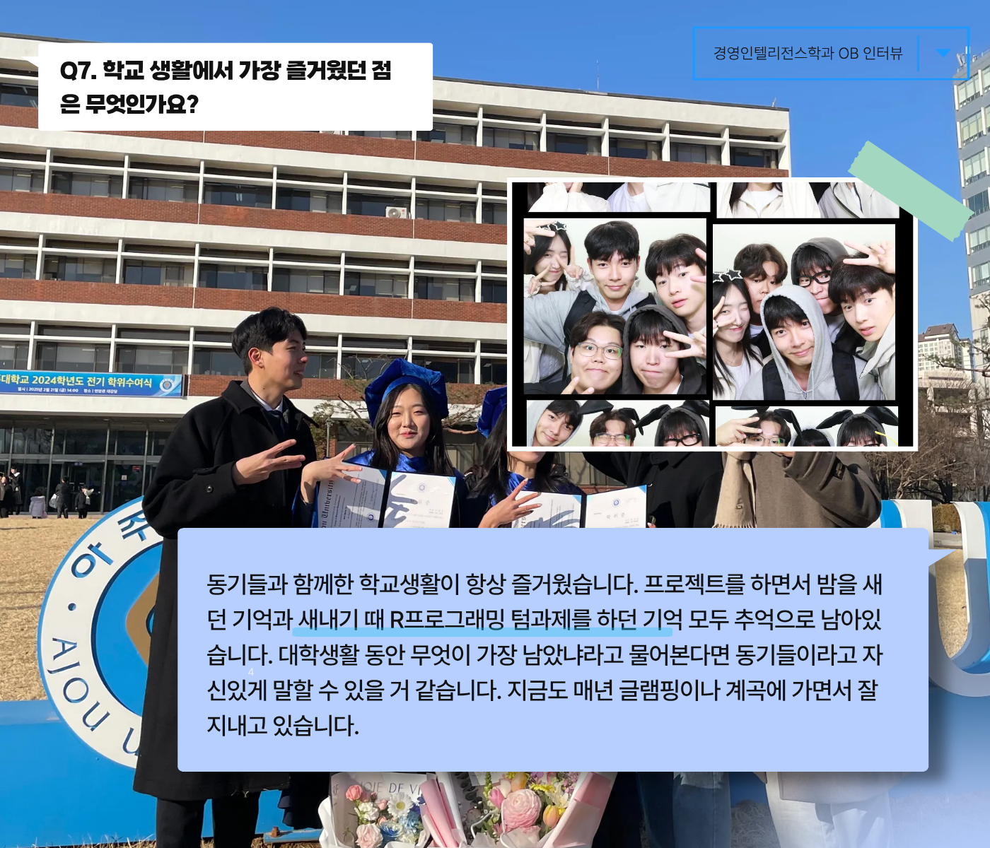 끝나자마자 여러분의 힐링 "경영인텔리전스학과의 OB 인터뷰"를 가져왔습니다~