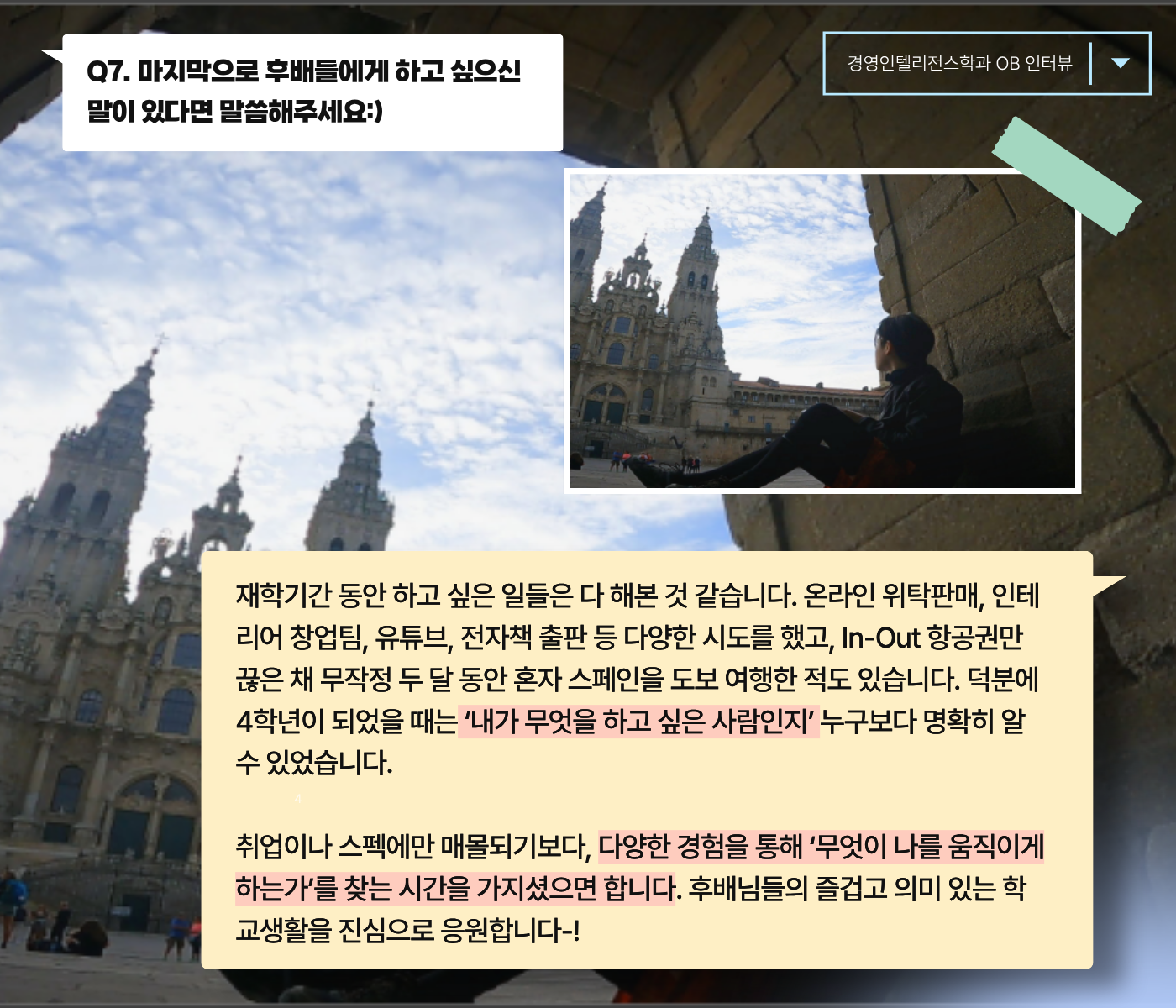 특히 인상 깊었던 건 선배님의 글로벌 챌린지 경험이였습니다!