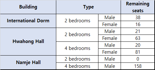 [Notice] [2025 WINTER SEMESTER] DORMITORY APPLICATION – 2nd Round (Remaining Slots)