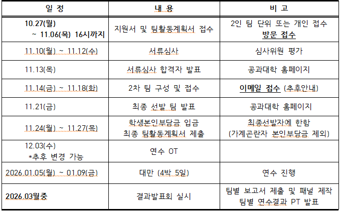 [2025-2학기 공과대학 자기개발 해외연수 참가자 모집]