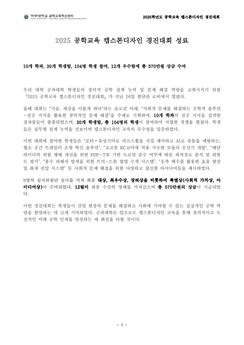 2025 공학교육 캡스톤디자인 경진대회 성료