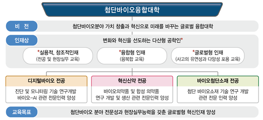 - 첨단 과학기술 융합교육과 현장실무교육을 통한 바이오헬스 첨단분야 융합적 전문성 획득