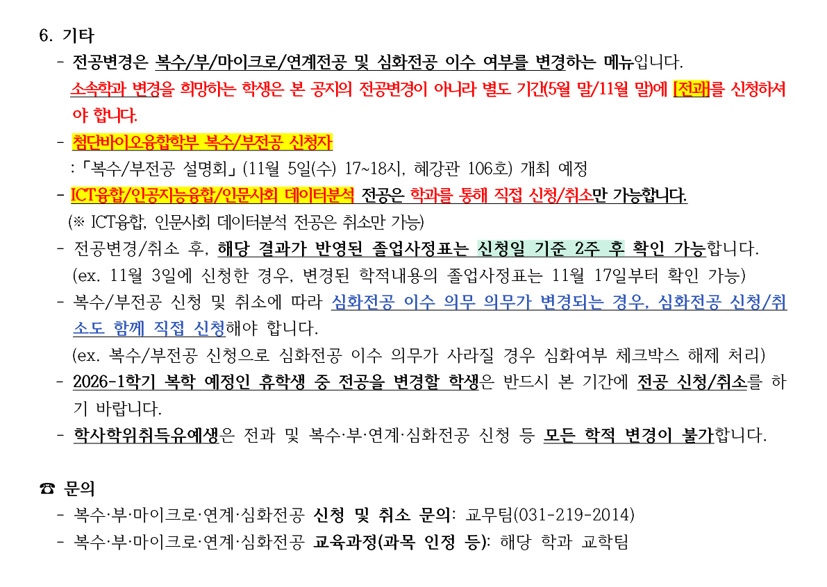 8. 복수 부전공 신청문의 : 국제학부 031-219-1691, soyi@ajou.ac.kr