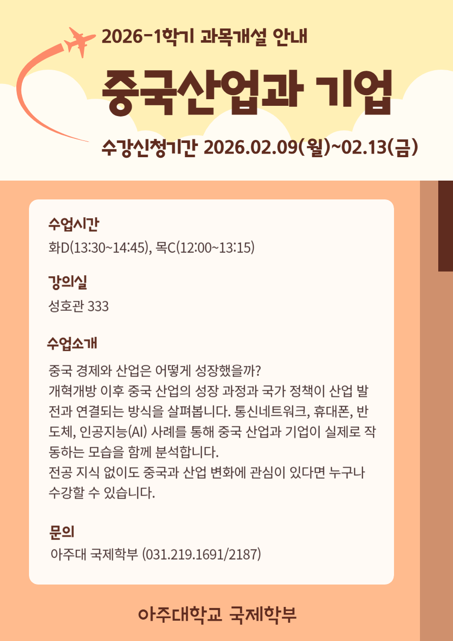 신청자격 : 국제학부 복수/부전공, 예정자 및 아주대 재학생 누구나, 학년제한없음