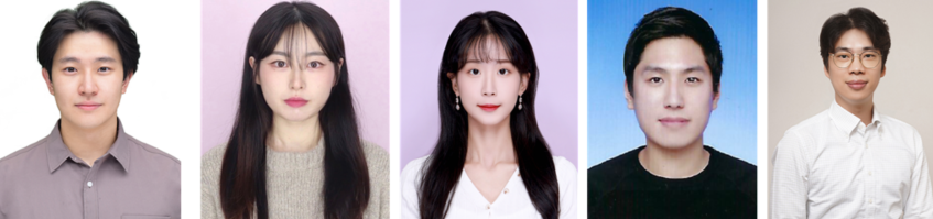 *위 사진 - 한승용 아주대 기계공학과 연구팀. 왼쪽부터 공도현 박사과정생, 강민지 석사과정생, 황수현 석사졸업생, 노연욱 박사, 한승용 교수