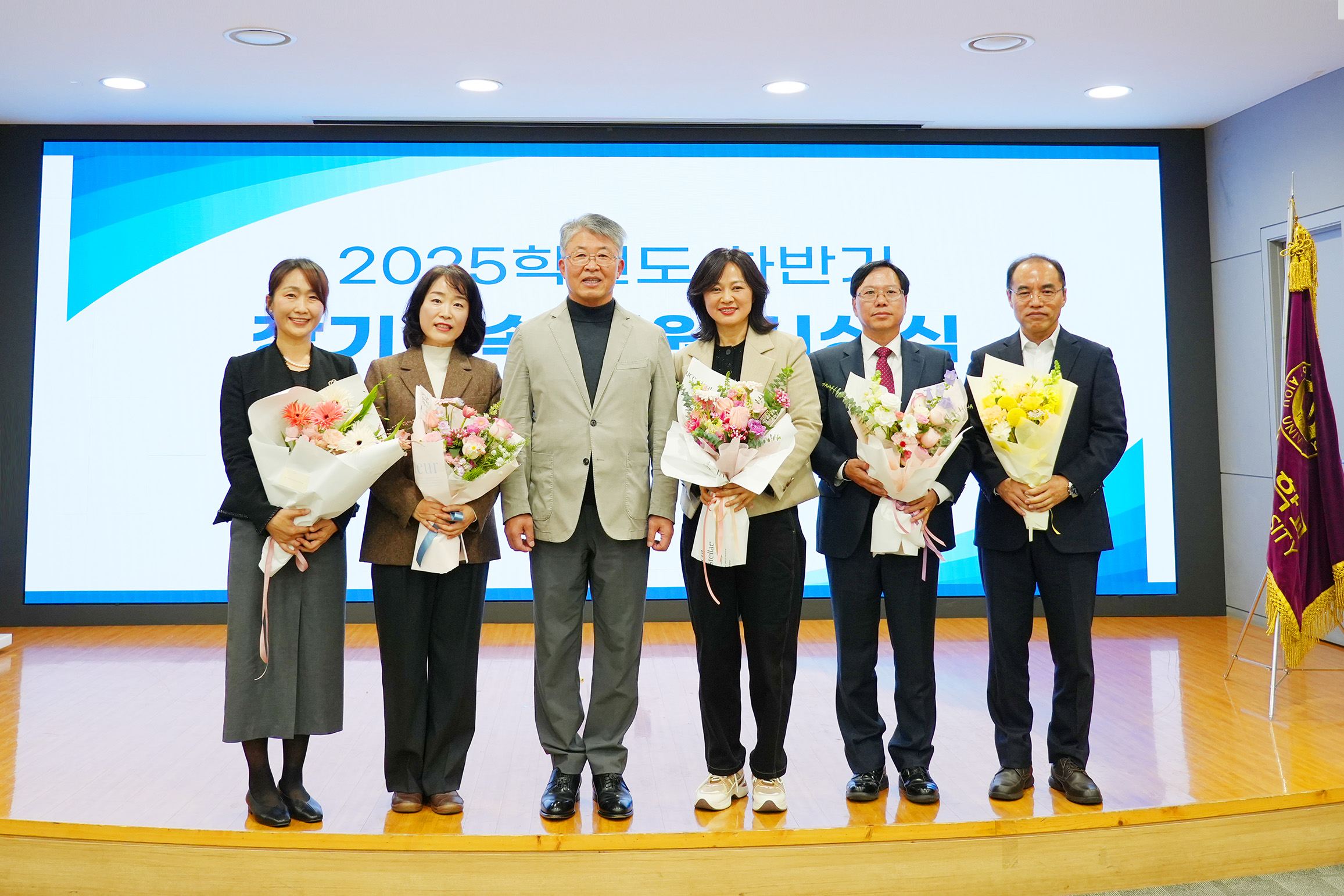 수상자를 대표해 정말희 팀장(교무팀)과 유남경 책임과장(첨단바이오융합대학교학팀)이 소감을 발표했고, 이후 최기주 총장의 축하인사와 기념촬영이 이어졌다.
