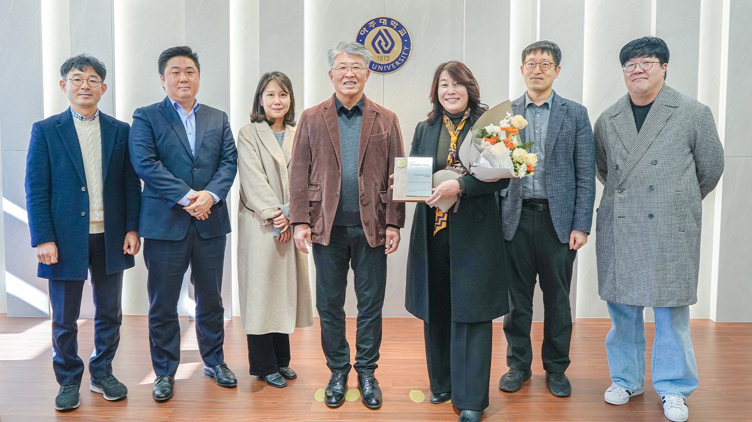 지난 29일 율곡관 총장실에서 열린 기부금 전달식 행사에는 이인길 ㈜대룡공업 대표, 왕지남 산업공학과 명예교수, 박광온 공공정책대학원 초빙교수가 참석했다. 학교에서는 감사 인사를 전하기 위해 최기주 총장과 조경숙 대학발전본부장, 최진영 공과대학장이 자리했다. 최기주 총장이 아주 가족을 대표해 감사 인사를 전하고 감사패와 예우품을 전달했다.