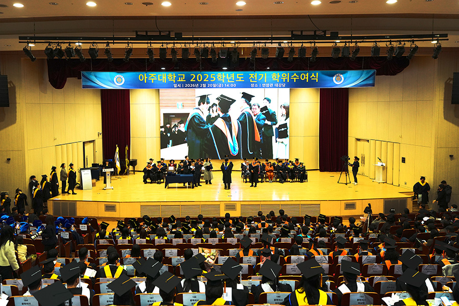 최 총장은 학위수여식사를 통해 "아주에서 쌓아온 배움과 도전의 시간은 앞으로의 여정을 지탱해 줄 든든한 기반이 될 것”이라며 “우리 학교가 언제나 의지할 수 있는 든든한 홈그라운드가 되도록 책임감을 갖고 발전시켜 나가겠다"며 졸업생들에게 축하의 인사와 함께 학교 발전에 대한 약속을 전했다.