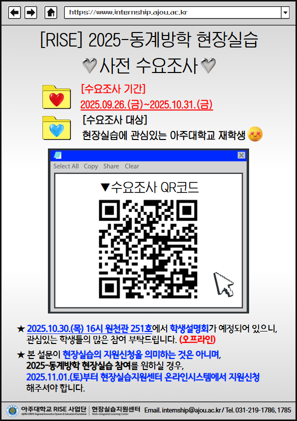 [재공지][RISE] 2025-동계방학 현장실습 사전 수요조사 진행 안내(2025.09.26.(금)~2025.10.31.(금))