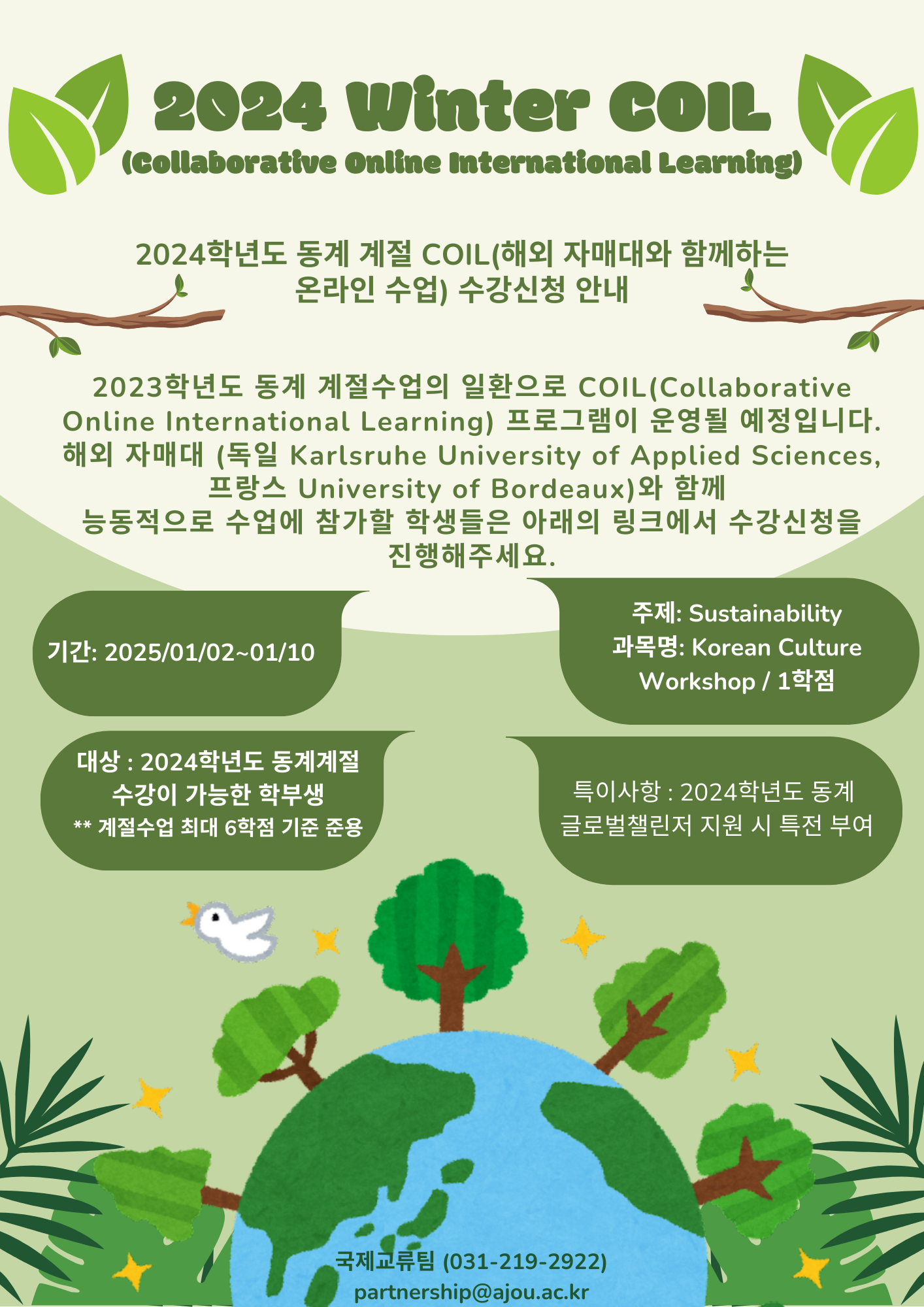 [학사] [국제교류팀] 2024학년도 동계 계절 COIL(해외 자매대와 함께하는 온라인 수업) 수강신청