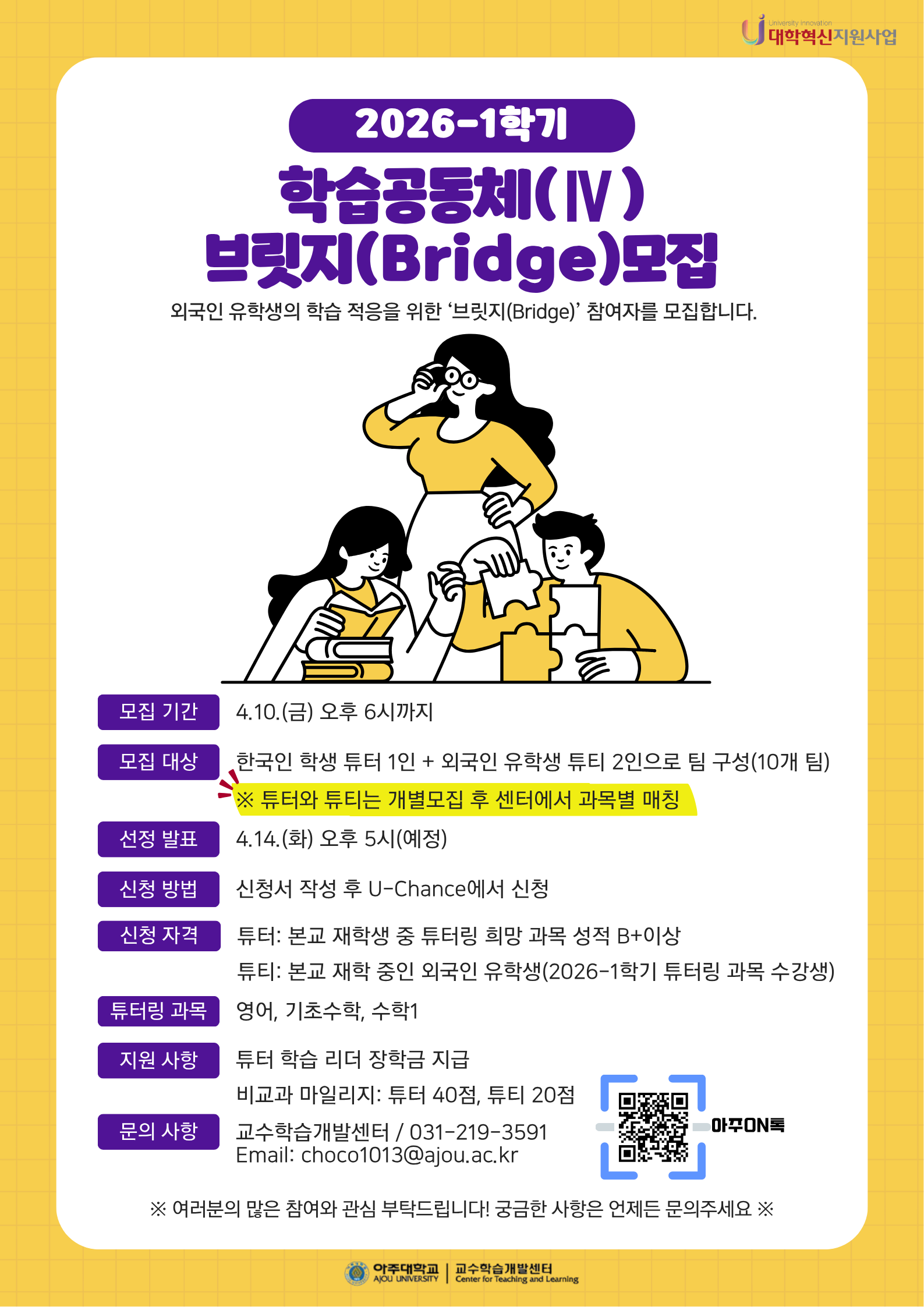 [비교과] [학습법] 2026-1학기 학습공동체(Ⅳ) 브릿지'Bridge'(외국인 유학생) 모집 안내(재공고)