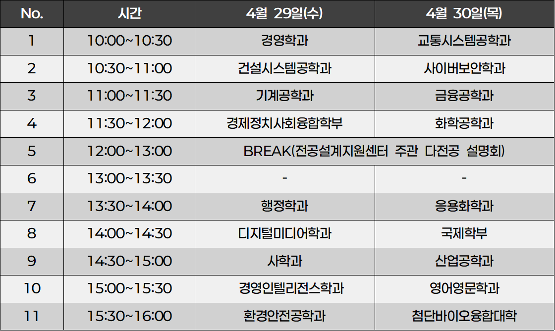 ※ 전공 설명회 시간표