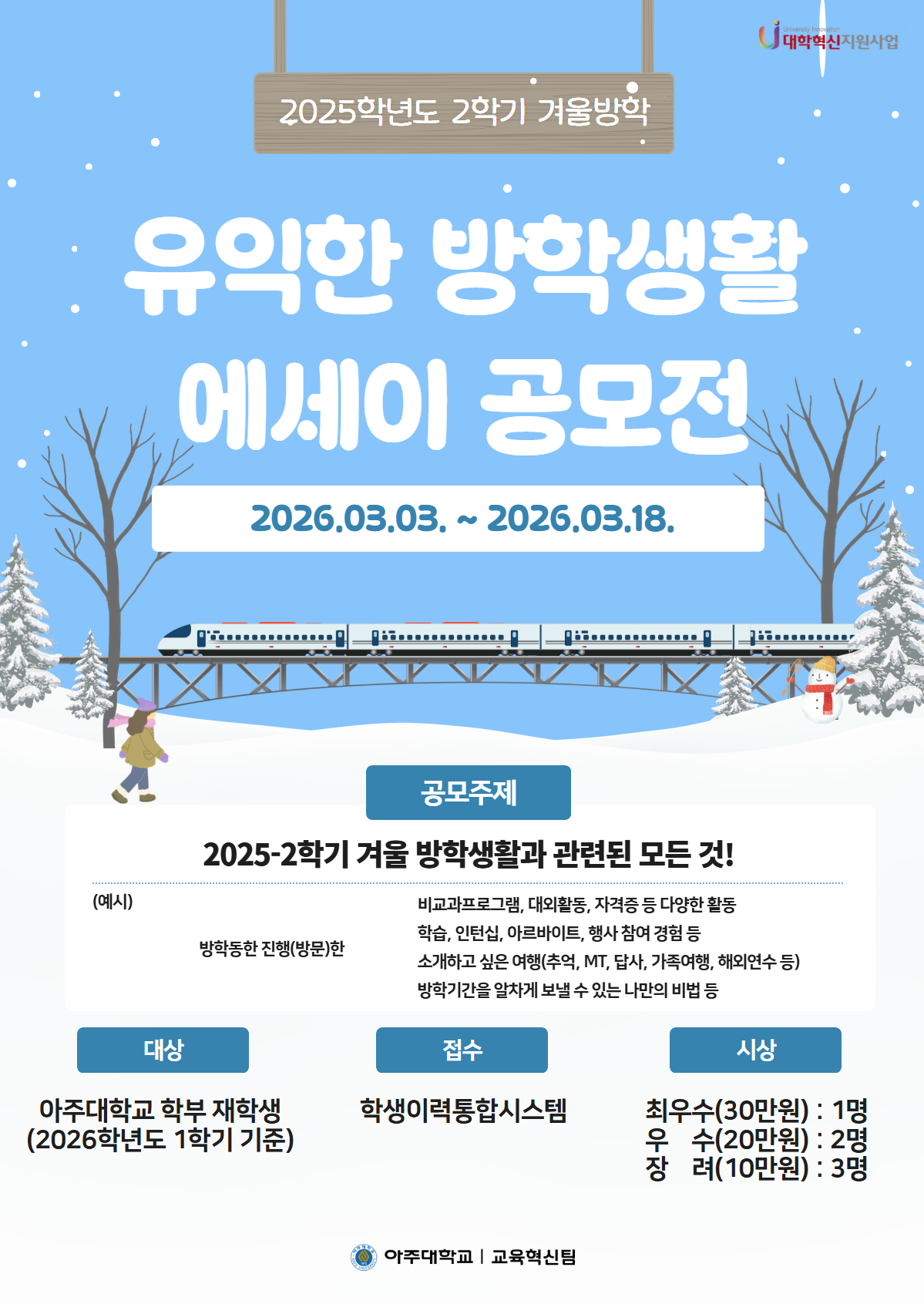 에세이 공모 주제 : 2025학년도 2학기 겨울 방학생활과 관련된 모든 것