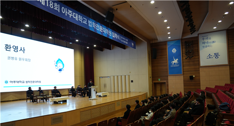 제18회 법학전문대학원 입학식이 지난 2월 26일 연암관 대강당에서 열렸다. 이날 입학식에는 소병천 원장 등 교수진과 원우회 등이 참석해 신입생 55명의 새로운 시작을 축하했다.