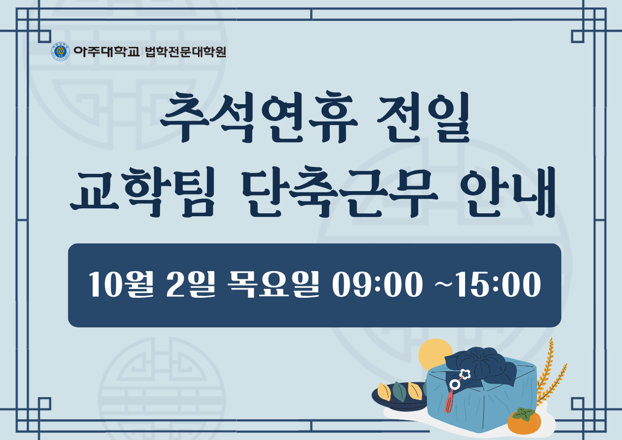 [공지] 추석 연휴 전일 교학팀 단축근무 안내(10/2)
