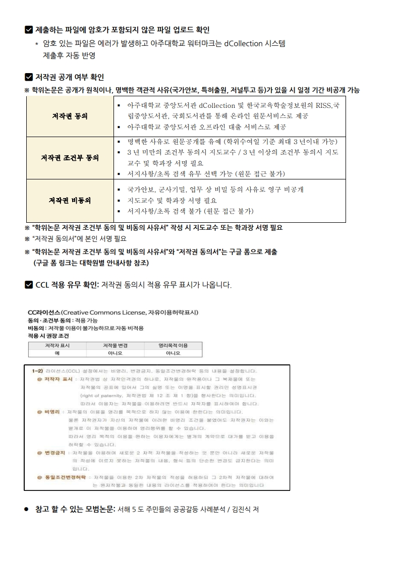 • (필독) 제출 전 점검사항: https://library.ajou.ac.kr/#/education/dcollection-check