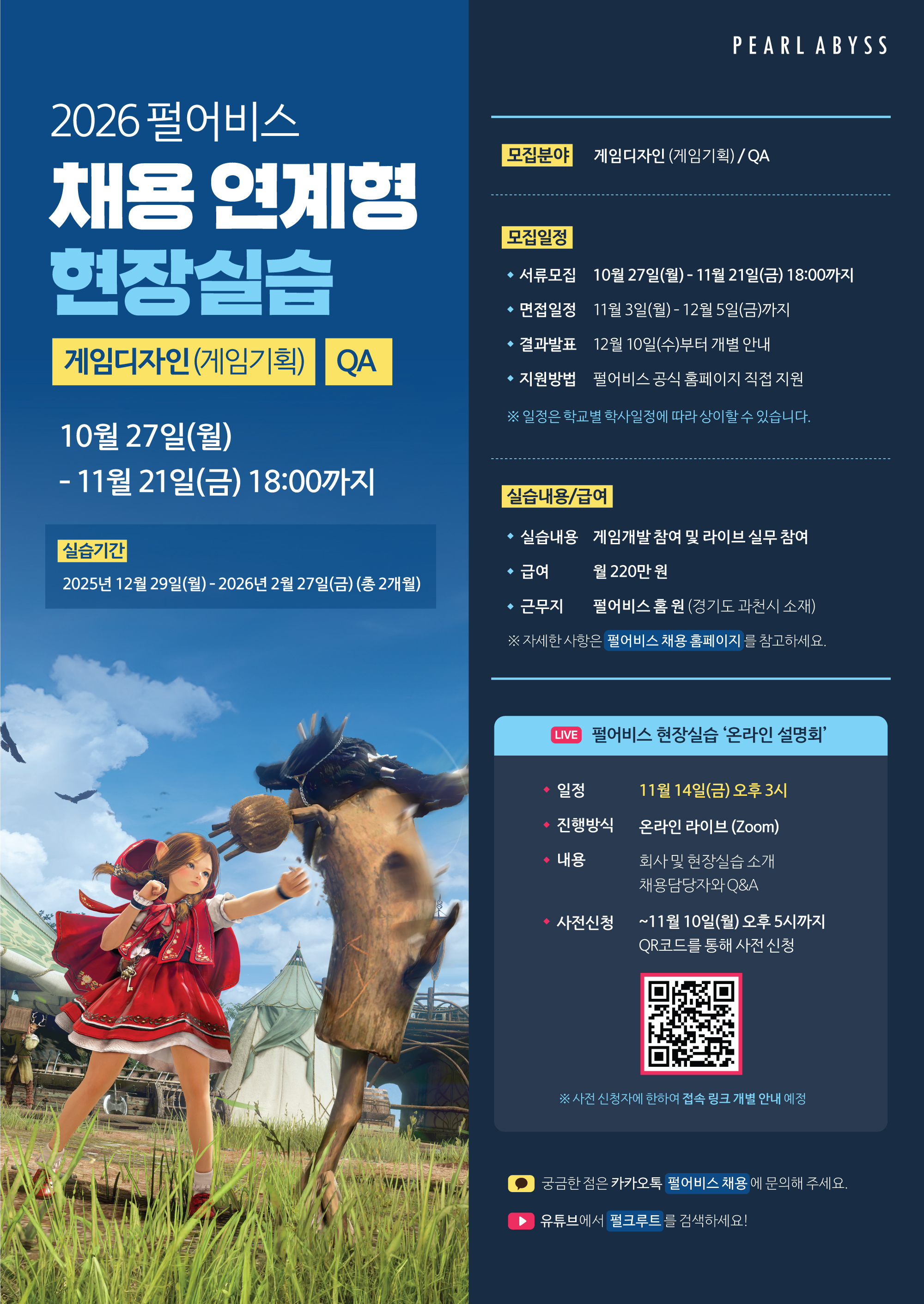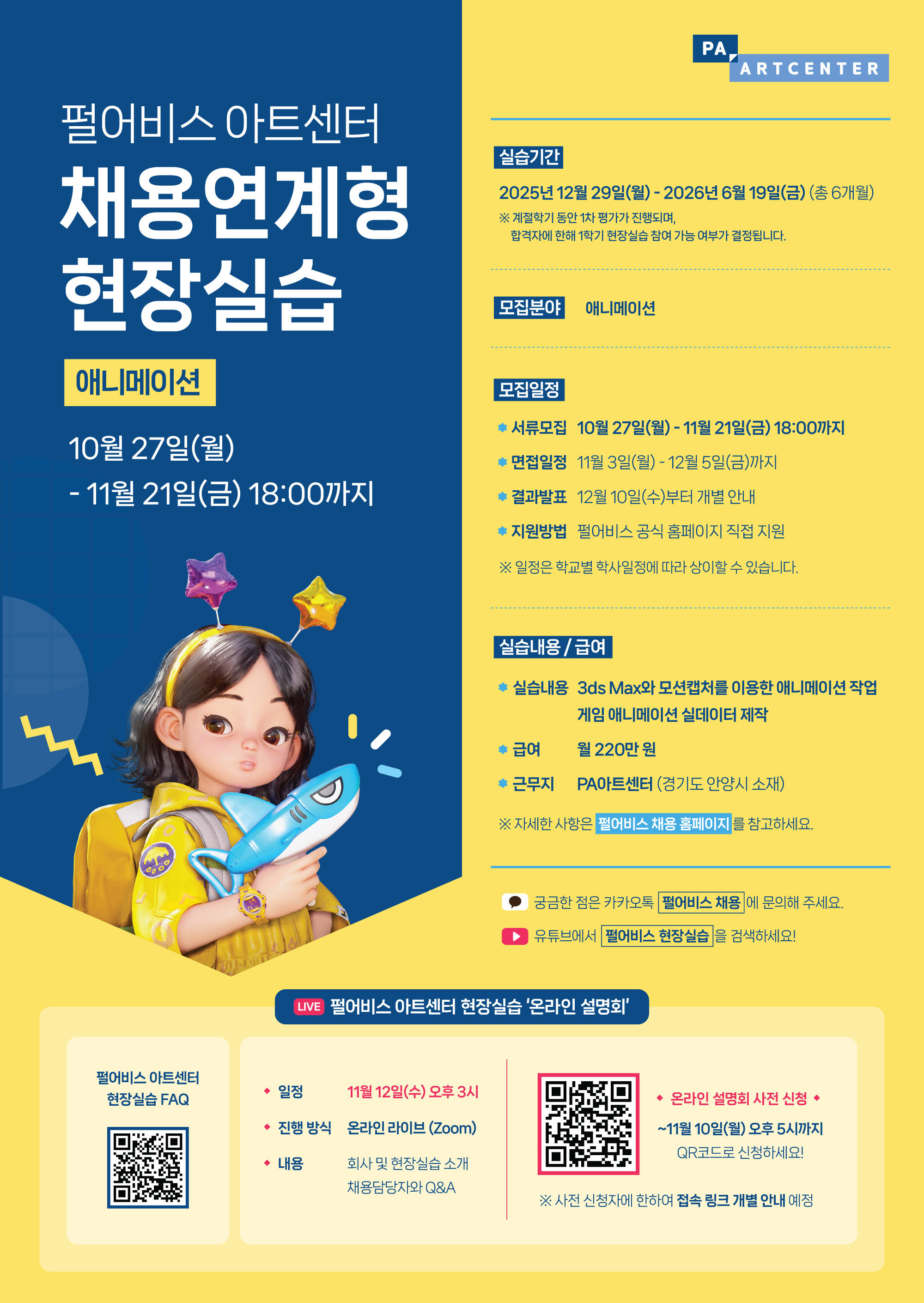 펄어비스/펄어비스아트센터 채용연계형 현장실습
