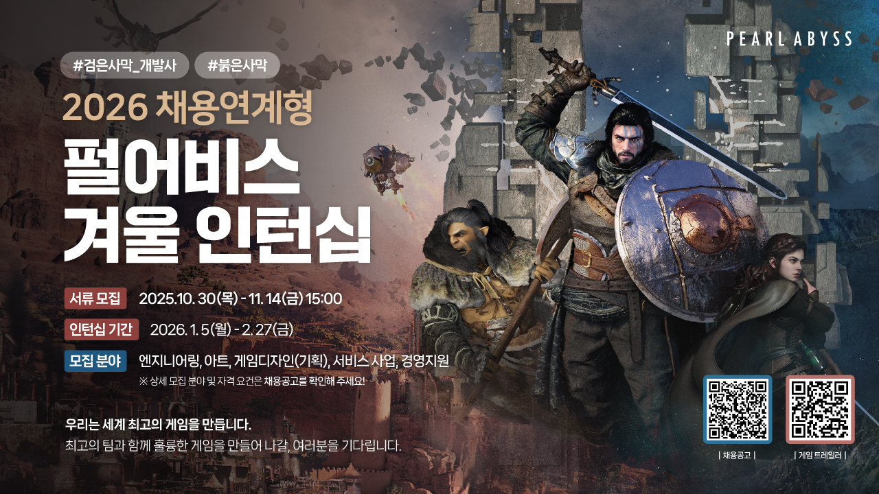 - 채용공고 링크 : https://www.pearlabyss.com/ko-KR/Company/Careers/List