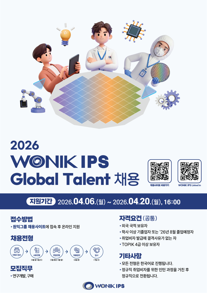 ▶️원익IPS 외국인 유학생 채용설명회 사전신청 바로가기