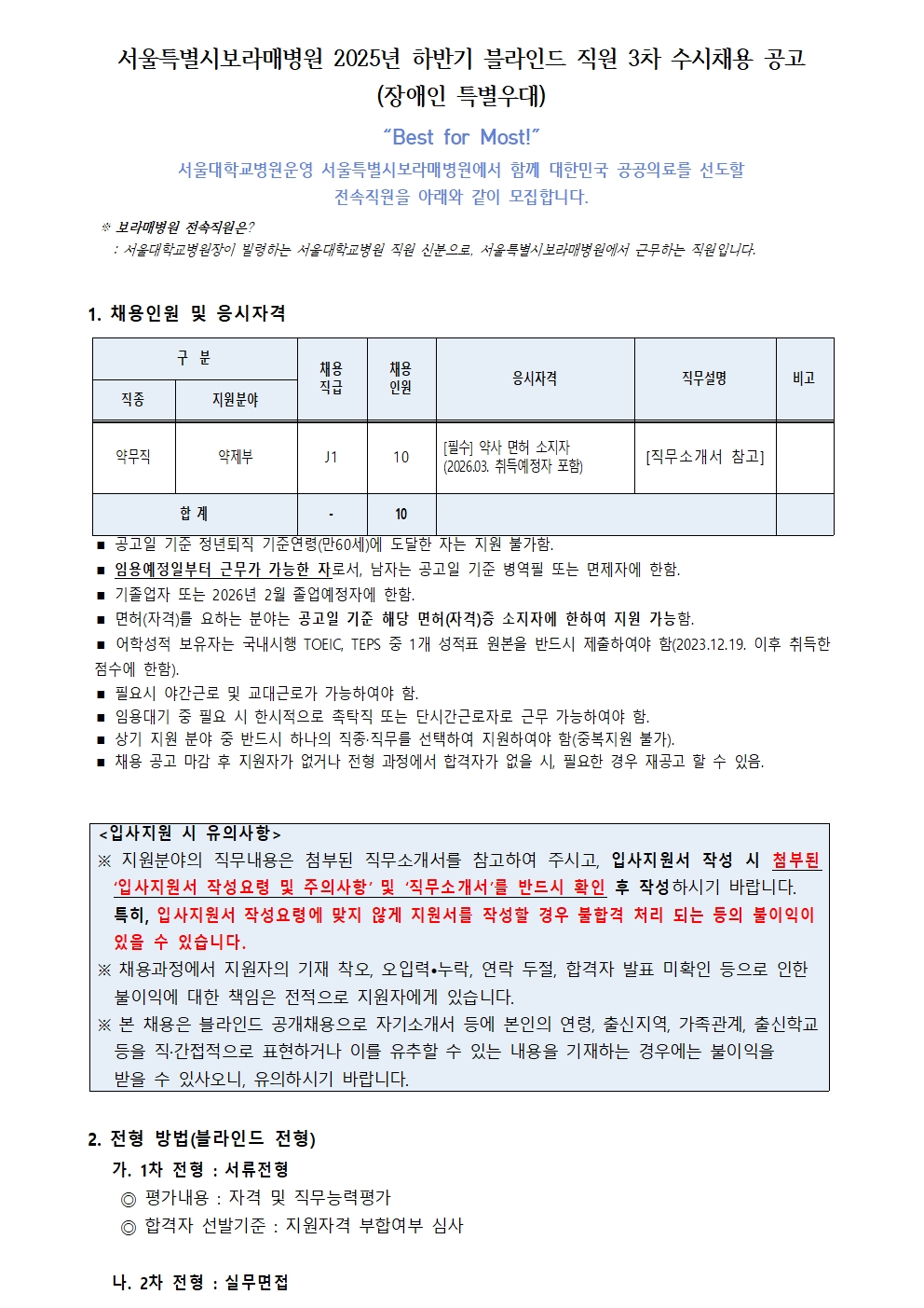[보라매병원 약제부] 2025년 하반기 약무직 블라인드 수시채용