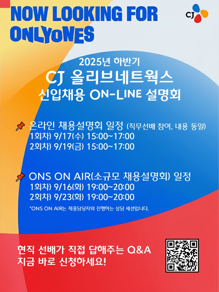 현재 진행중인 2025년 하반기 CJ올리브네트웍스 신입인재 채용과 관련하여
