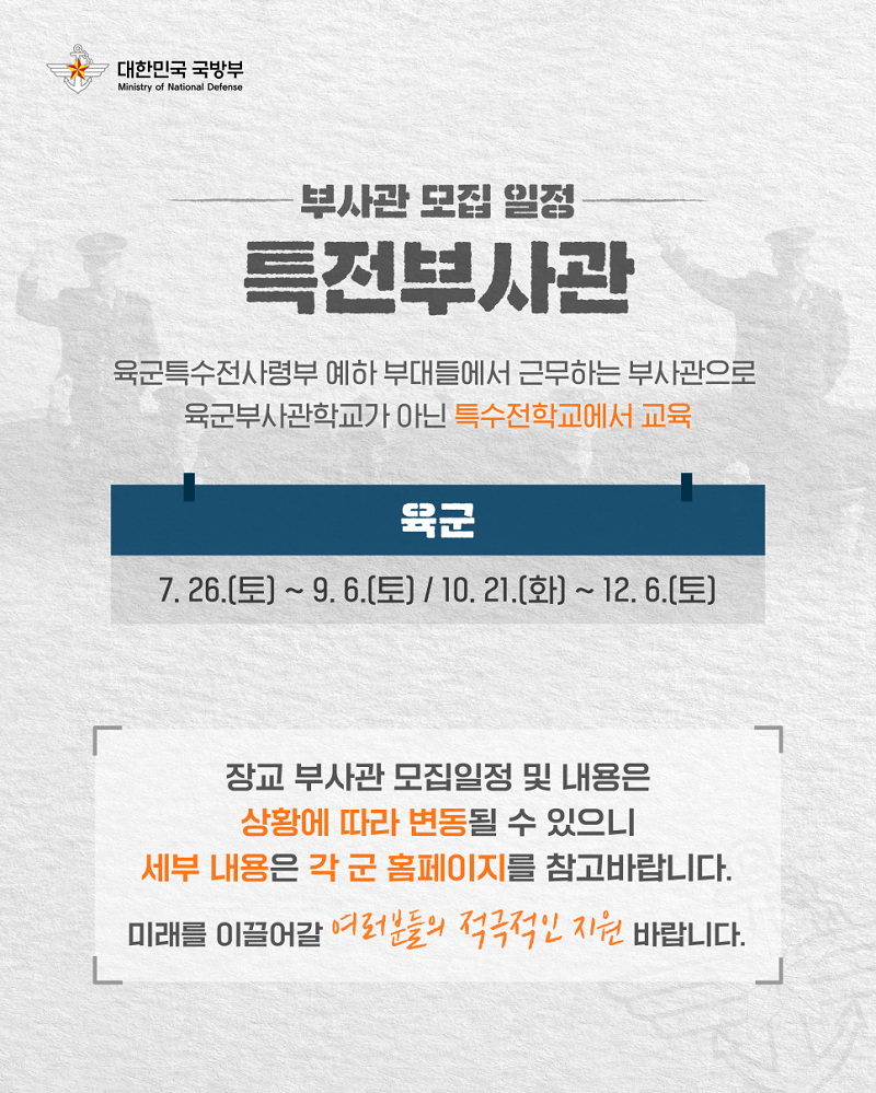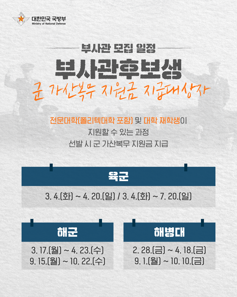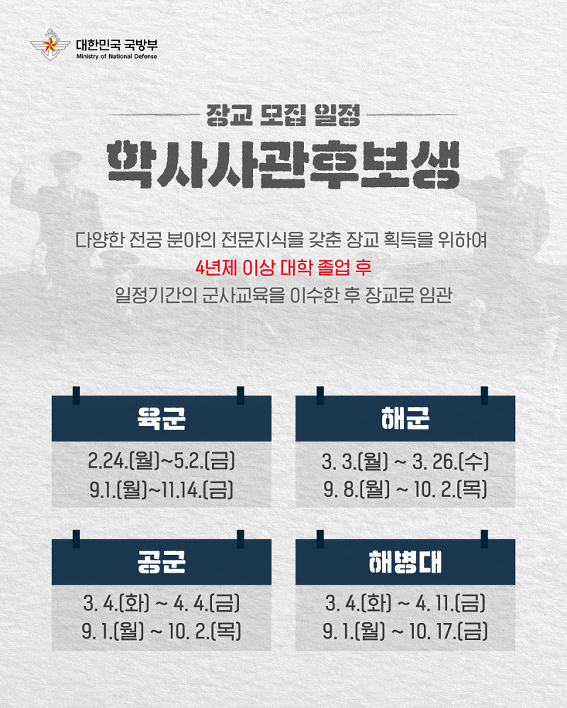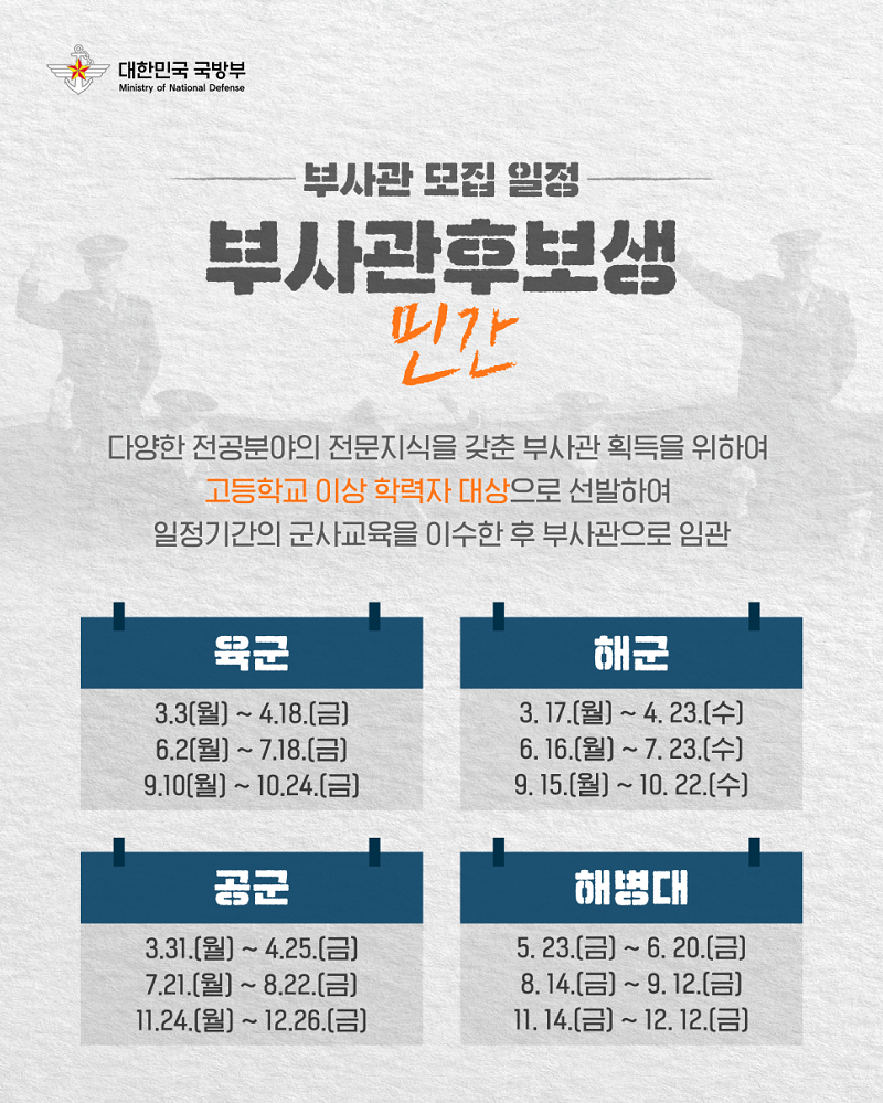 2025년 각 군 별 장교/부사관 모집 일정 안내