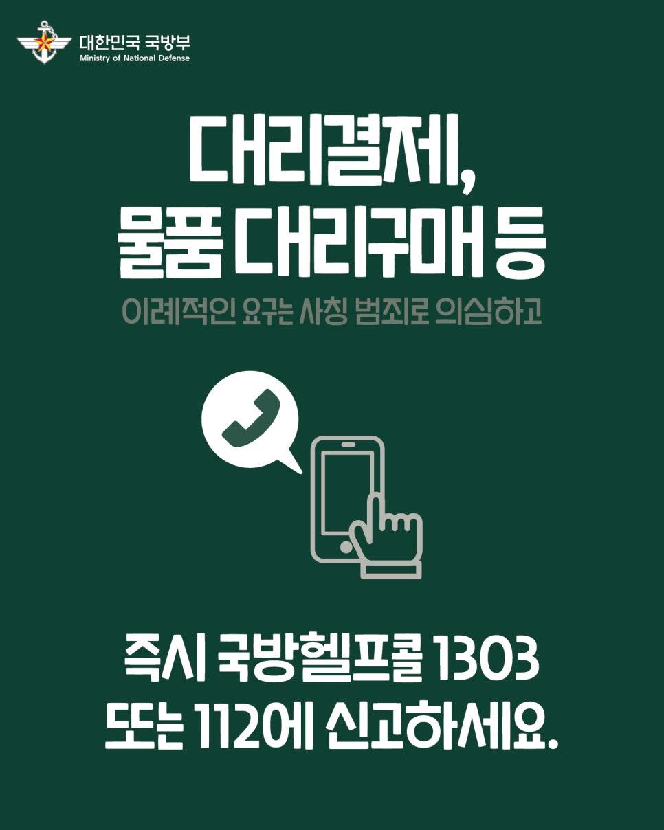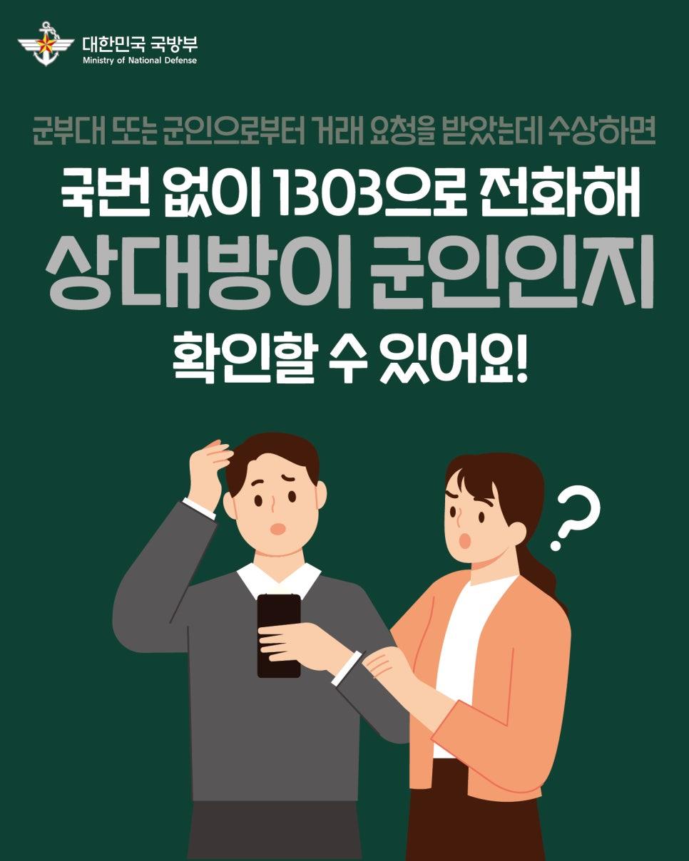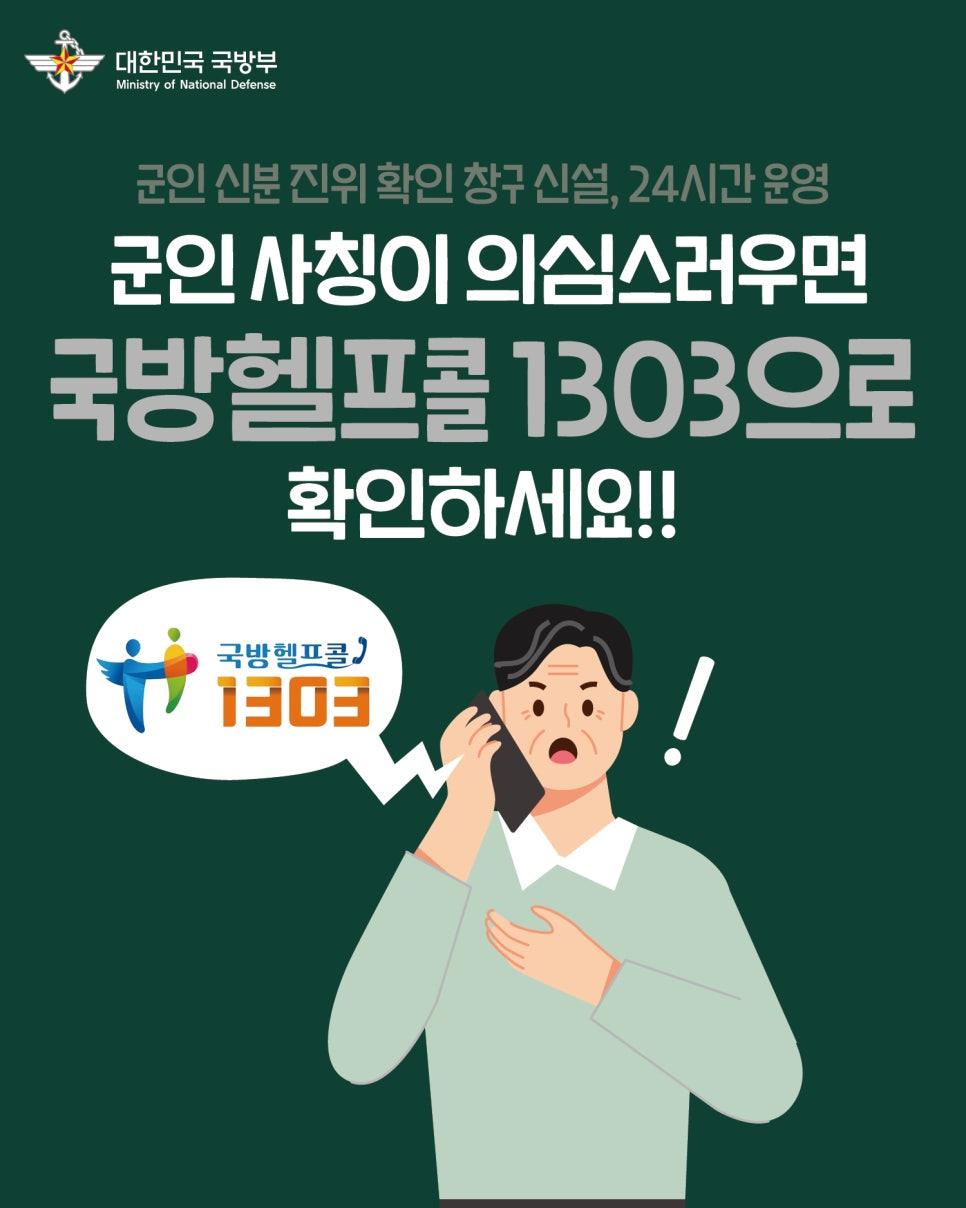 군인 사칭 사기 적극 대응, “국방헬프콜 1303으로 확인하세요”