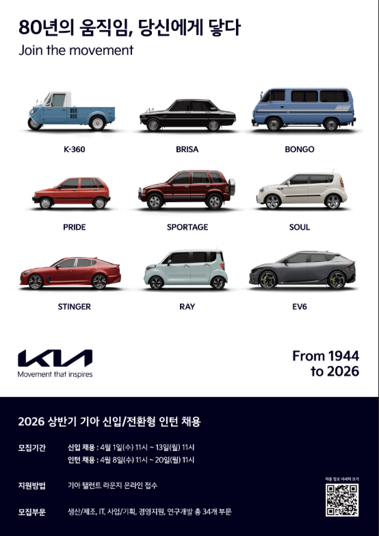 [취업] [기아] 2026상반기 기아 신입/전환형 인턴 채용 (신입 ~4/13(월) 11시, 인턴 ~4/20(월) 11시까지)