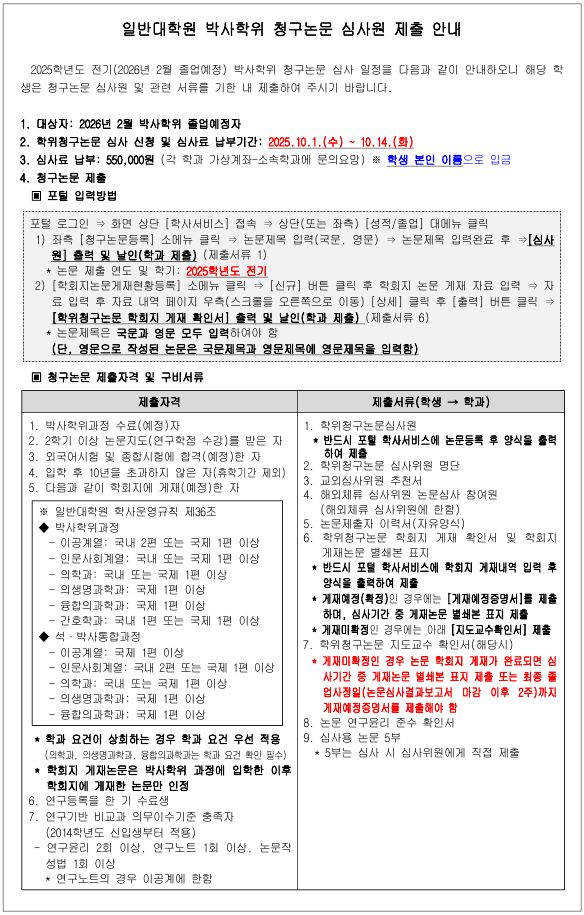 [학사] 2025-2학기 박사학위 청구논문 심사원 제출 안내(2026년 2월 졸업예정자)