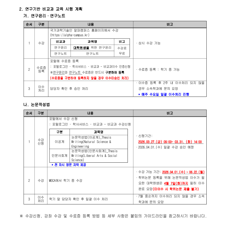 [학사] 2026-1학기 비교과교육 의무이수기준 및 교육 이수 안내