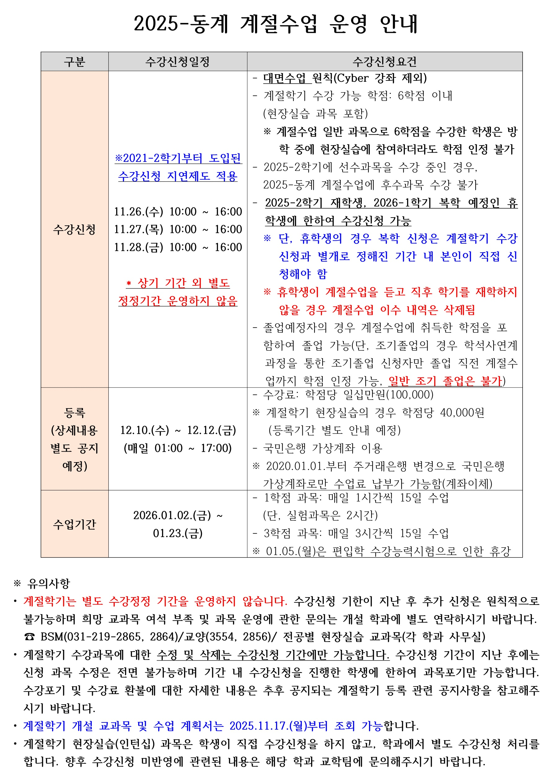 [학사] [학부/학사과정] 2025-동계 계절학기 안내